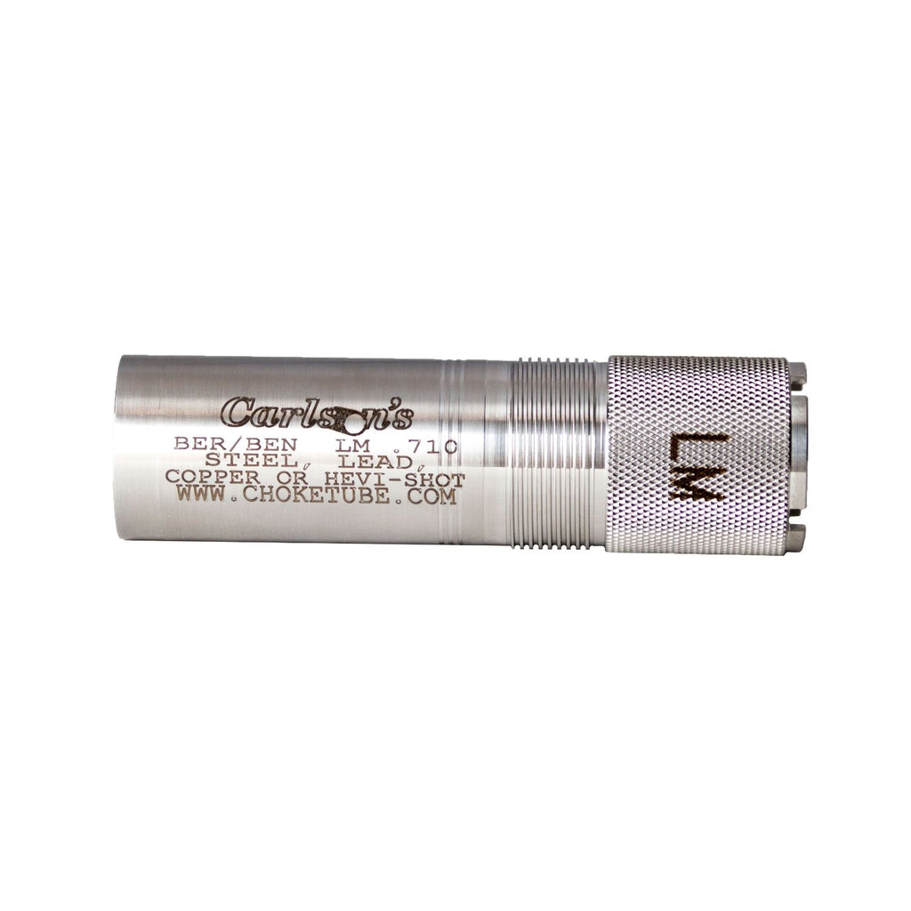Carlson's Beretta/Benelli Mobil 12ga Sporting Clay Light Modified Choke Tubes are made from 17-4 heat-treated stainless steel and are precision machined to produce a choke tube that patterns better than standard choke tubes. These choke tubes feature a 25 percent longer parallel section in the choke thus throwing more consistent patterns than conventional choke tubes. Extended choke tubes protect the end of your barrels and have knurling on the end to allow for quick and easy removal. Each choke tube has the constriction laser marked on the end for easy reference. lead, copper-plated, nickel, hevi-shot, bismuth, tungsten or steel shot may be used in these choke tubes.
