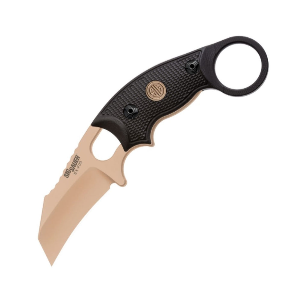 The Hogue EX–F03 is a discreet, compact knife that’s easily carried. The scaled EX–F03 has an extended grip over the full steel variation. The finger ring aids in quick deployment and supplies superior hand retention. A Mini-Piranha texture provides extreme traction, while a rotatable belt sheath holds the knife in place. Both models have deep finger grooves, textured thumb ramps and surprising cutting power for their size.