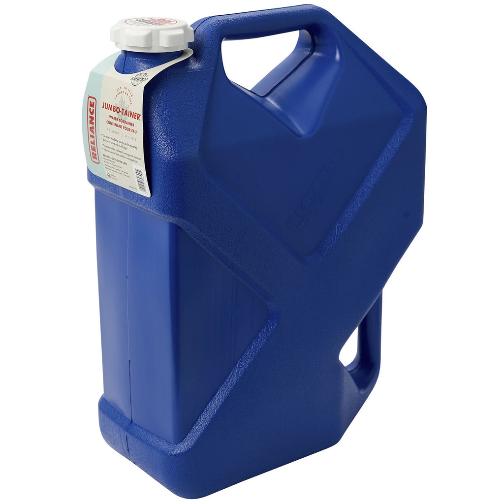The Reliance 7 Gallon Jumbo-Tainer combines the easy to carry shape of a traditional “jerry can” with a more functional design. Boasting a huge 7 gal./26L capacity the Jumbo-Tainer is ideally suited for trips requiring lots of water. The Jumbo-Tainer comes with a hideaway spigot that can be quickly attached for easy pouring. The dual handles make this large container easy to pour, and the handle placements also allow the unit to be securely fastened down if necessary.