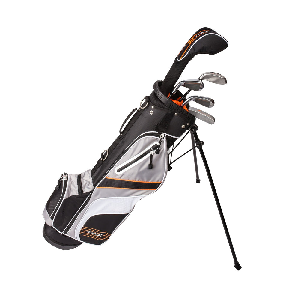 The Merchants of Golf Tour X Junior Golf sets are great for beginner golfers. Ages 12 & Over. 4'6" in Height and Over. Includes: 1 - Oversized 3 Wood. 1 - Deep Cavity 7 Iron. 1 - Alignment Style Putter. 1 - Deluxe Lightweight Stand Bag with Dual Strap. 1 - Matching Headcover.